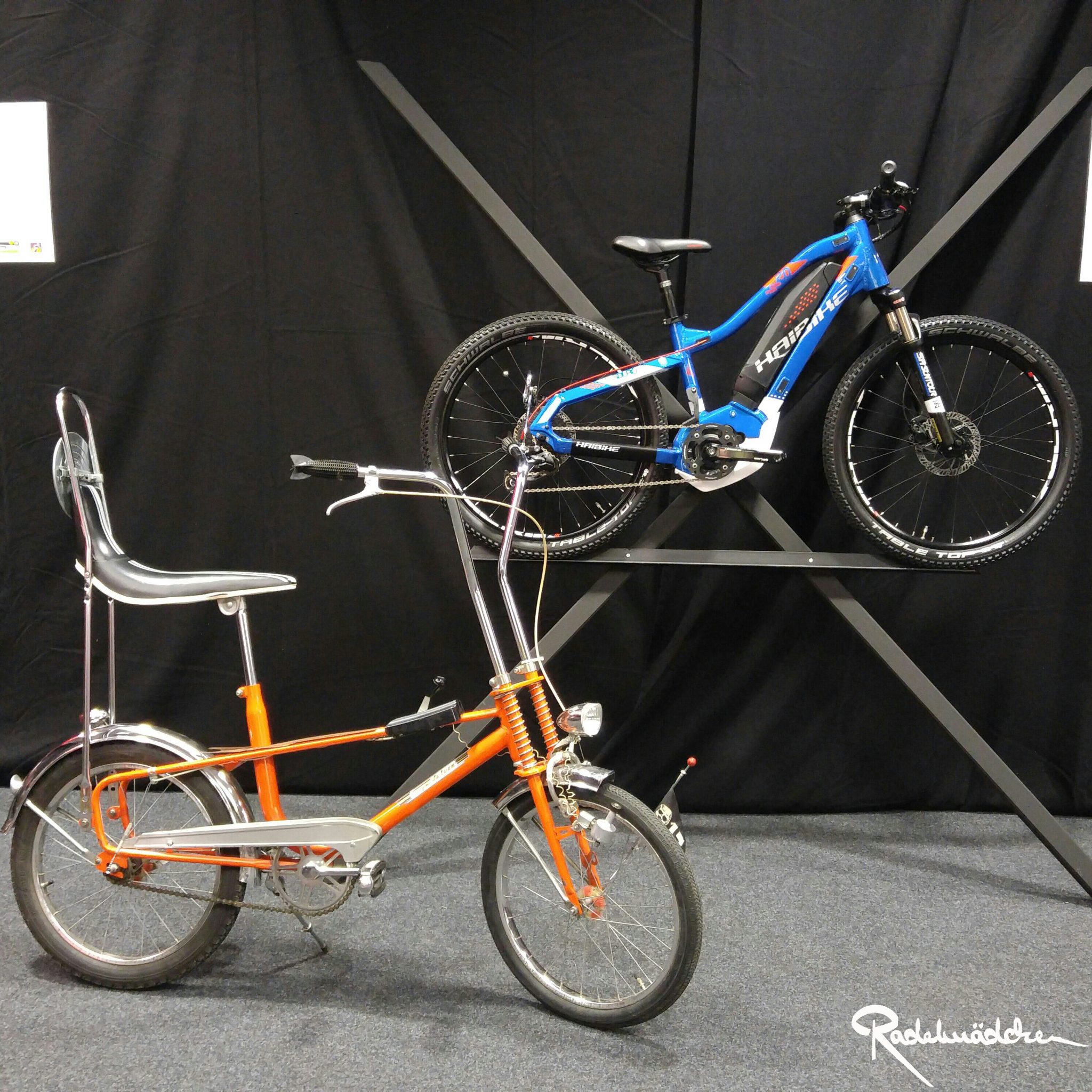 Einen tollen Abschluss fand die Messe für mich am Freitagabend bei der Trendlounge, ausgerichtet vom Radkulturmagazin Fahrstil und der Eurobike: „200 Jahre Fahrrad – eine Velografie by Fahrstil“. Diese Ausstellung stellte alt und neu gegenüber, das damals und heute in der Entwicklung des Fahrrads. Wahnsinnig spannende Stücke waren dort zu sehen, teilweise aus privater Hand (wie Harald Legners Titanrad von Mawis aus Hamburg) oder seltene Fahrräder aus dem Fahrradmuseum in Bad Brückenau (wie ein Mochet Rad).