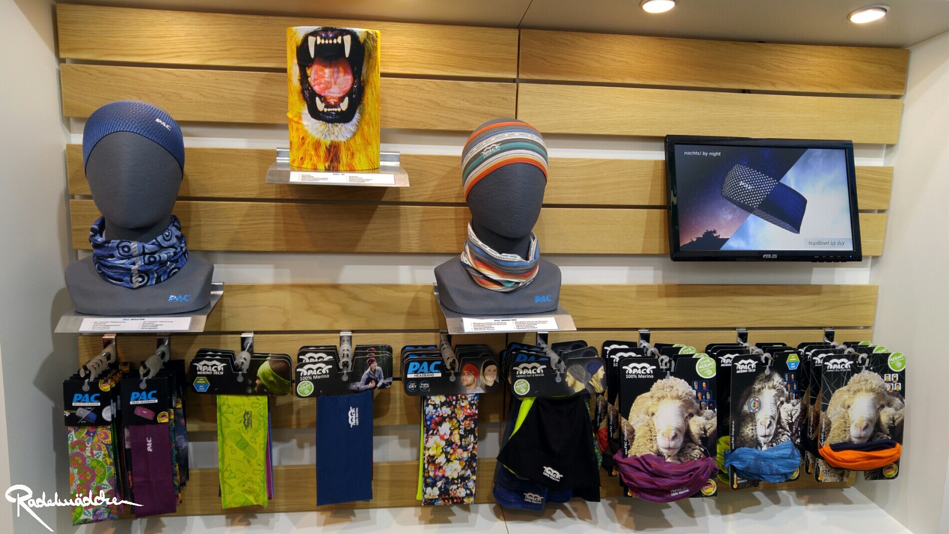 Außerdem war ich bei P.A.C. aus Schweinfurt am Stand. Dort sprach mich sofort die Vielzahl der bunten Farben und Drucke auf den Tüchern, Strümpfen und Mützen an. Die große Auswahl an qualitativ hochwertigen, funktionalen Multifunktionstüchern war das eine, das tolle aber ist auch, dass deren Produktion komplett in Deutschland stattfindet. Die verwendeten Materialen sind vielseitig und funktional, wie die Tücher aus mulesing-freier Merinowolle.