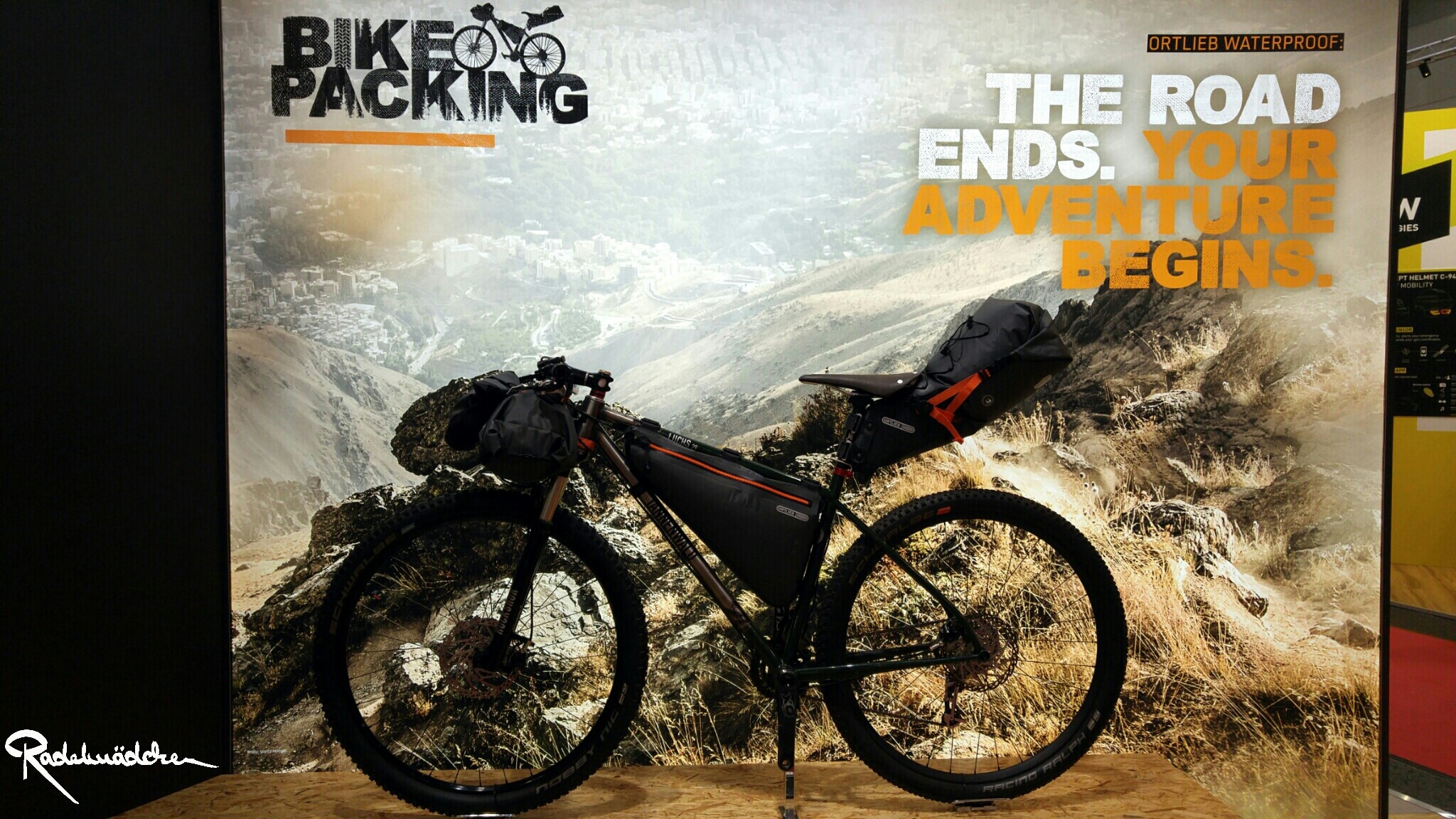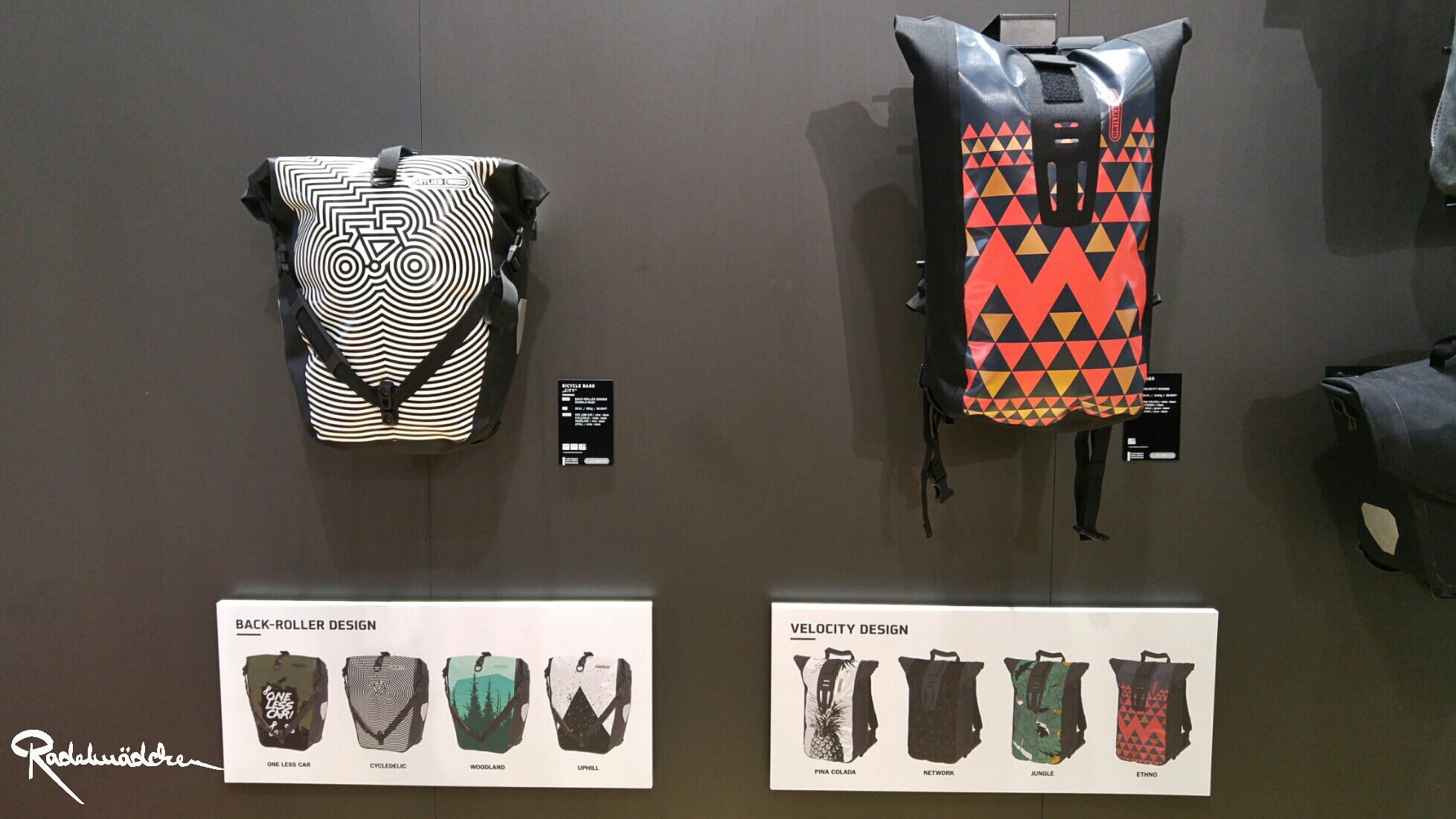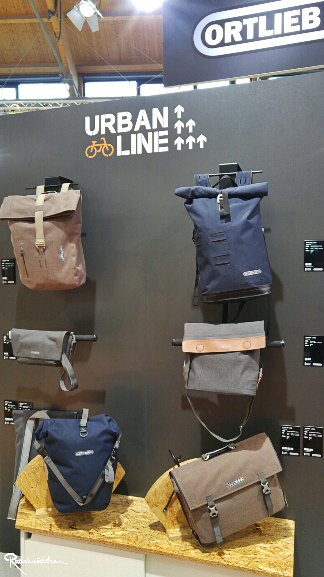 Die Taschenspezialisten von Ortlieb haben nicht nur jedes Jahr einen visuell sehr ansprechend gestalteten Stand, sondern auch in ihrem Feld Fahrradtaschen immer wieder etwas Neues zu bieten. Besonders das Konzept der Nachhaltigkeit ist ein wichtiges Thema. Das wird nicht nur durch die Auswahl der Materialien bestimmt, sondern auch von der Wahl des Produktionsstandortes und der Langlebigkeit eines Produktes. Made in Germany heißt es daher seit 1982 und falls die Tasche doch mal einen Defekt hat, bietet Ortlieb einen Reparaturservice an.