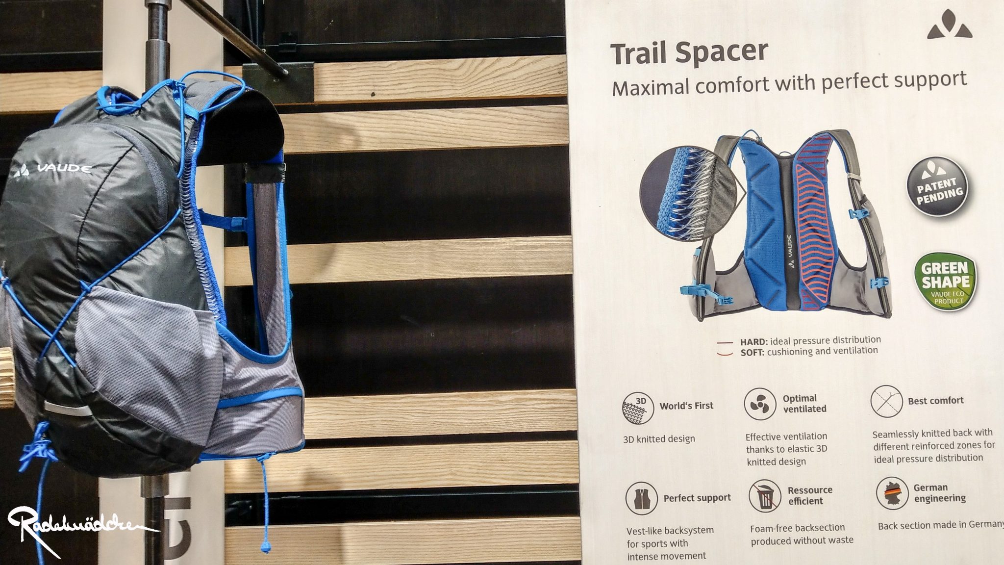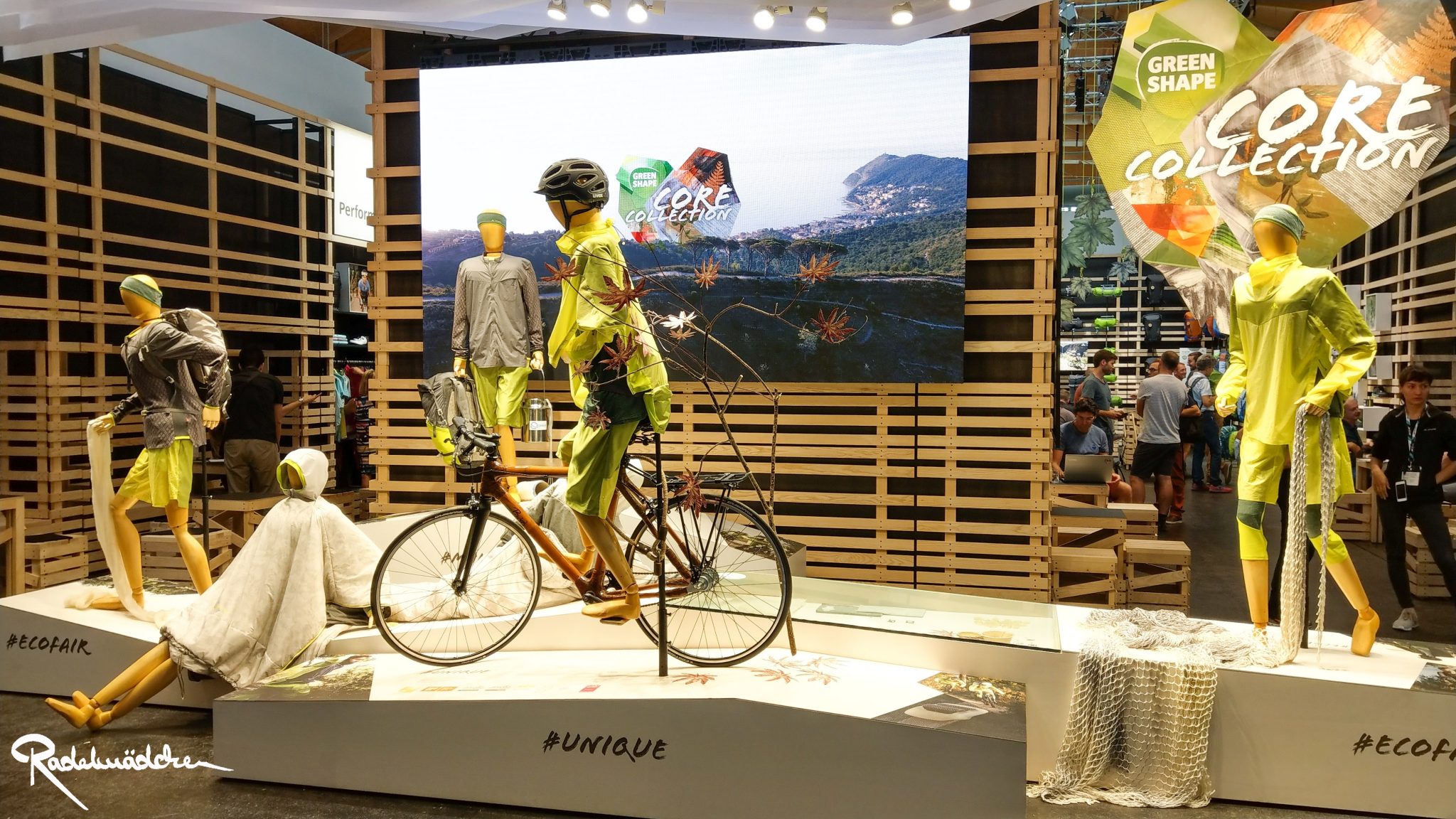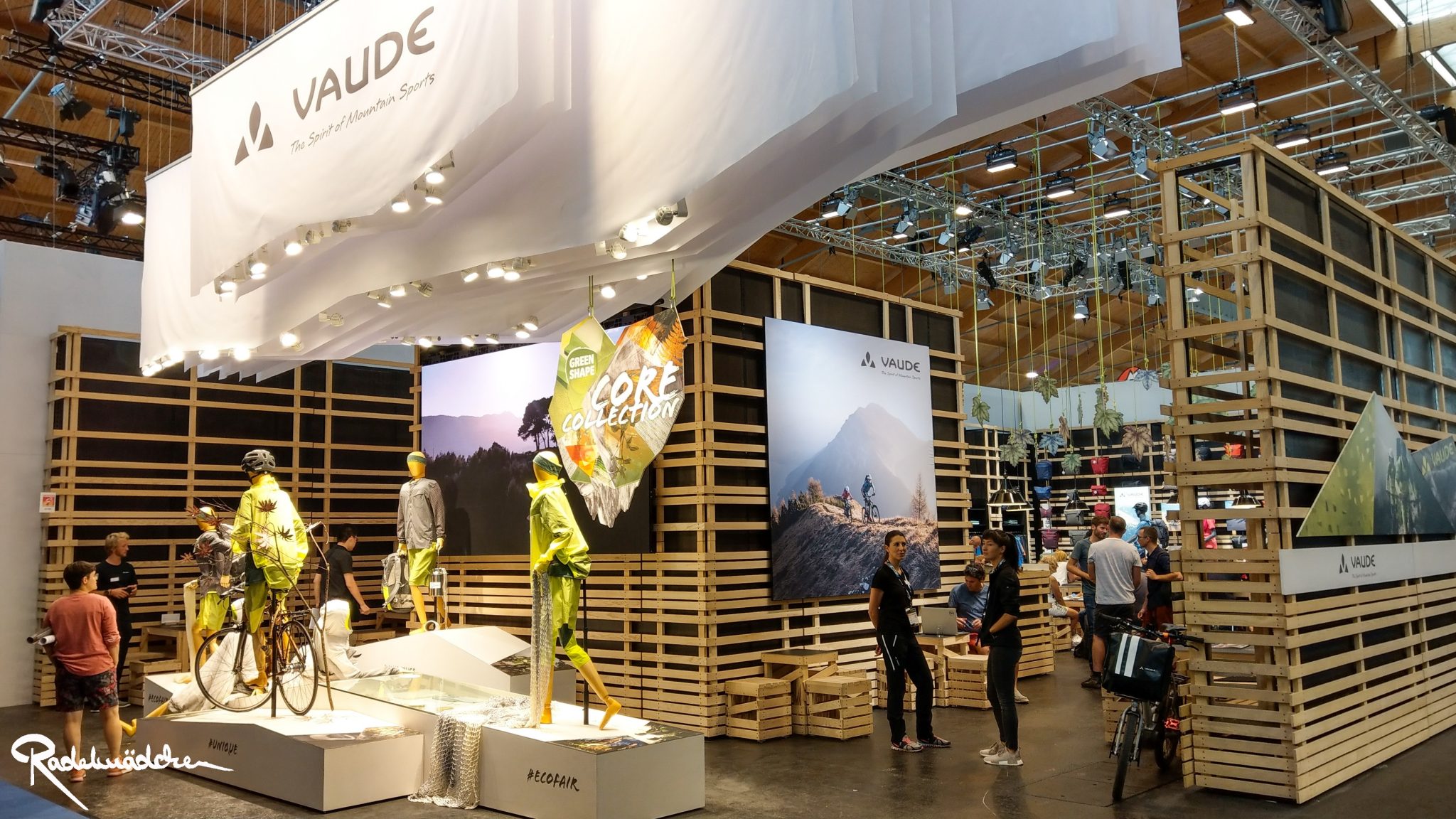 So zog es mich bereits am Sonntagvormittag direkt zu VAUDE an den Stand. Das Familienunternehmen aus Tettnang gleich um die Ecke vom Bodensee bleibt ihrem Nachhaltigkeitsbestreben als grünster Outdoorausrüster Deutschlands nach wie vor treu. Schon im Eingangsbereich zum großen, mit Holz gestalteten Stand, liegt der Fokus klar auf Recycling und Wiederverwendbarkeit von Materialien. Neu ist die Core Collektion unter anderem aus recycelten Fischernetzen oder Stoffen aus Non-Food-Milch Milchfasern (Qmilk).