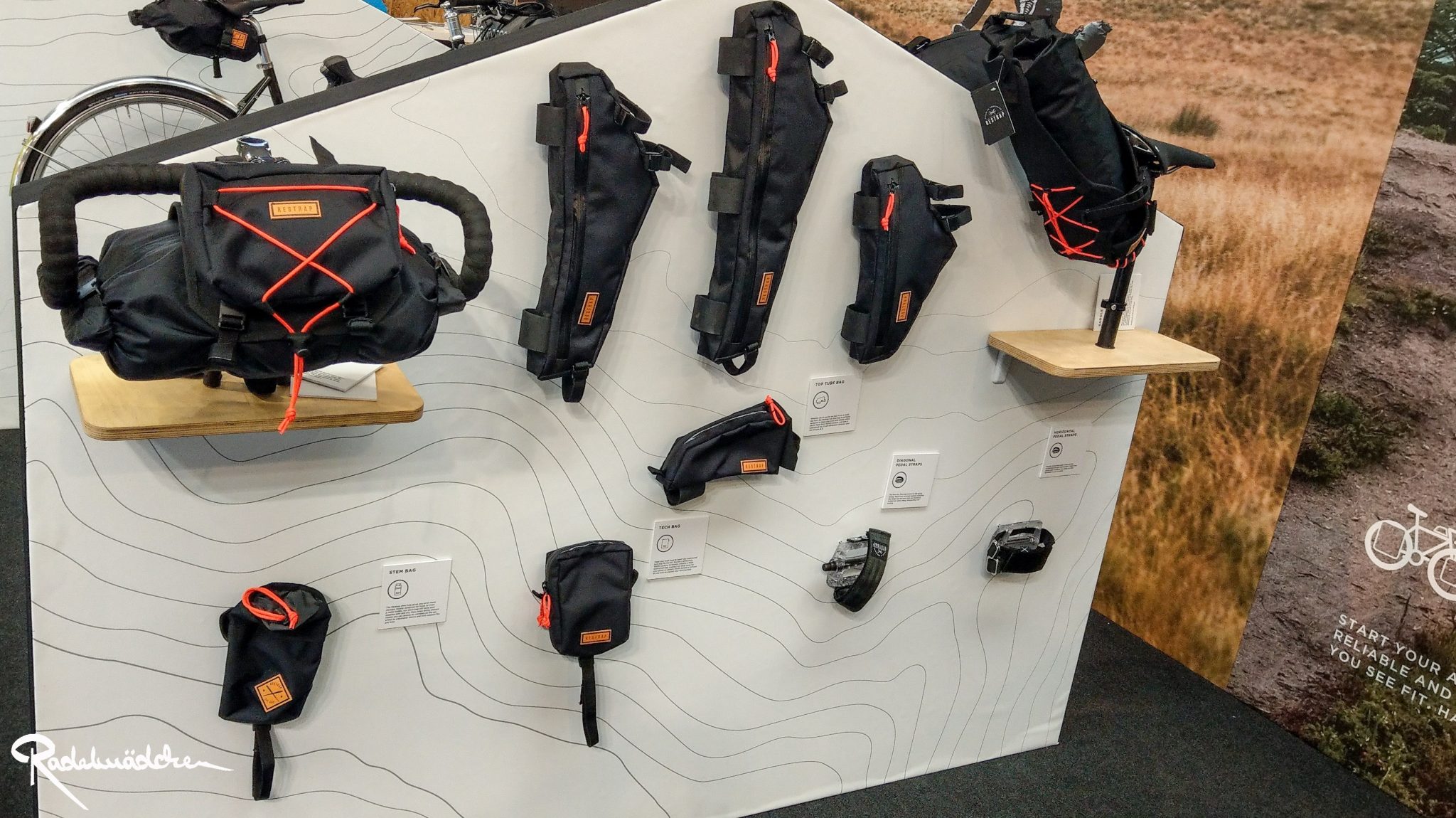 Neben dem britischen Hersteller Restrap, der mittlerweile den meisten Bikepacking Freunden ein Begriff sein sollte, zeigten auch andere Taschenmarken und immer öfter auch Fahrradhersteller ihre Rahmen-, Sattel- und Lenkertaschen.