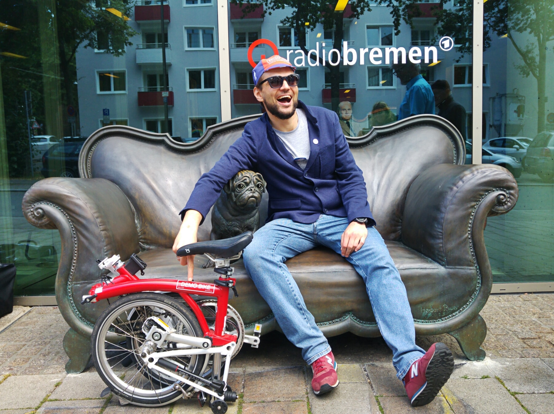 Am Vortag das Rad abgeholt, reiste ich am frühen Morgen ( sehr, sehr, sehr früh) in die Hansestadt zusammen mit meinem kleinen Demo Bike in rot-weiß vom Faltradladen Boxbike in Berlin. Der liebe Patrick hat mir das Brompton freundlicherweise das Wochenende über geliehen, sodass ich an beiden Tagen mobil war und an den Events teilnehmen konnte. Also auf zum Startpunkt der Urban Challenge (BUC), einem großen Fahrradhandel in Bremen, wo bei einem gemütlichen Frühstück die Teams zusammen kamen oder sich neu gefunden haben. Martin war noch nicht dabei an diesem Tag, dafür durften wir Joachim kennen lernen, der einen super Teamkollegen abgab. Die BUC ist eine Schnitzeljagd durch die jeweilige Stadt, in der sie stattfindet, im Team und mit den kleinen englischen Falträdern von Brompton.