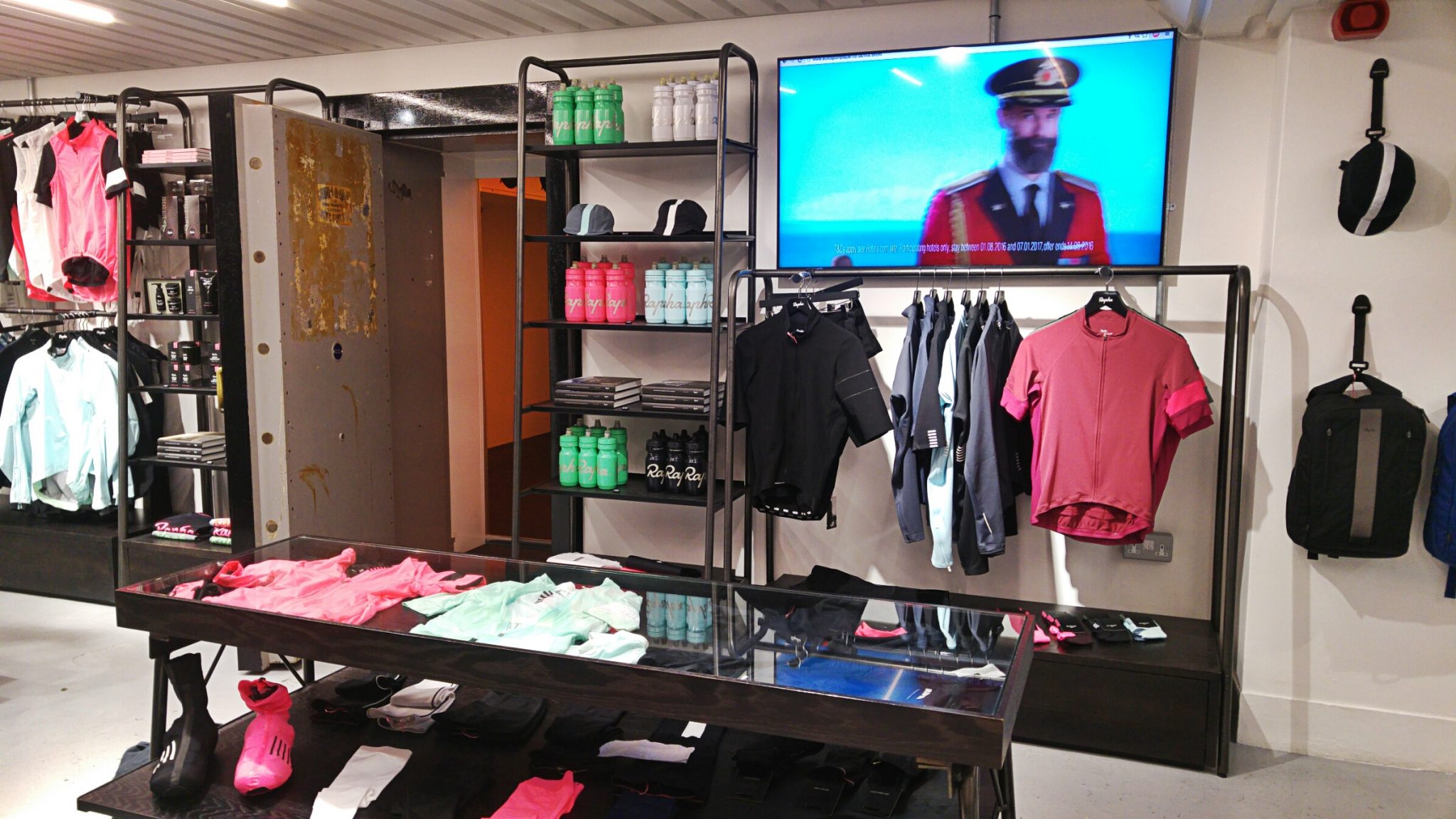 Dort findet sich neben Hochleistungsbekleidung aus innovativen Materialien für Männer und Frauen, eine dicke, breite Tresortür! Klingt komisch, ist aber so, da früher eine Bank in diesen Räumlichkeiten untergebracht war. Selbst das alte Telefon mit Wählscheibe ist noch vorhanden. Dieser Tresorraum ist nun umfunktioniert und zu ‚The Vault´ geworden, ein Testraum mit fest montiertem Rad und Windmaschine. Mithilfe diesem kann der Kunde die Produkte ausprobieren und zum Bespiel die Winddichte überprüfen oder die perfekte Größe seines neuen Bekleidungsstückes in der richtigen Sitzposition finden.
