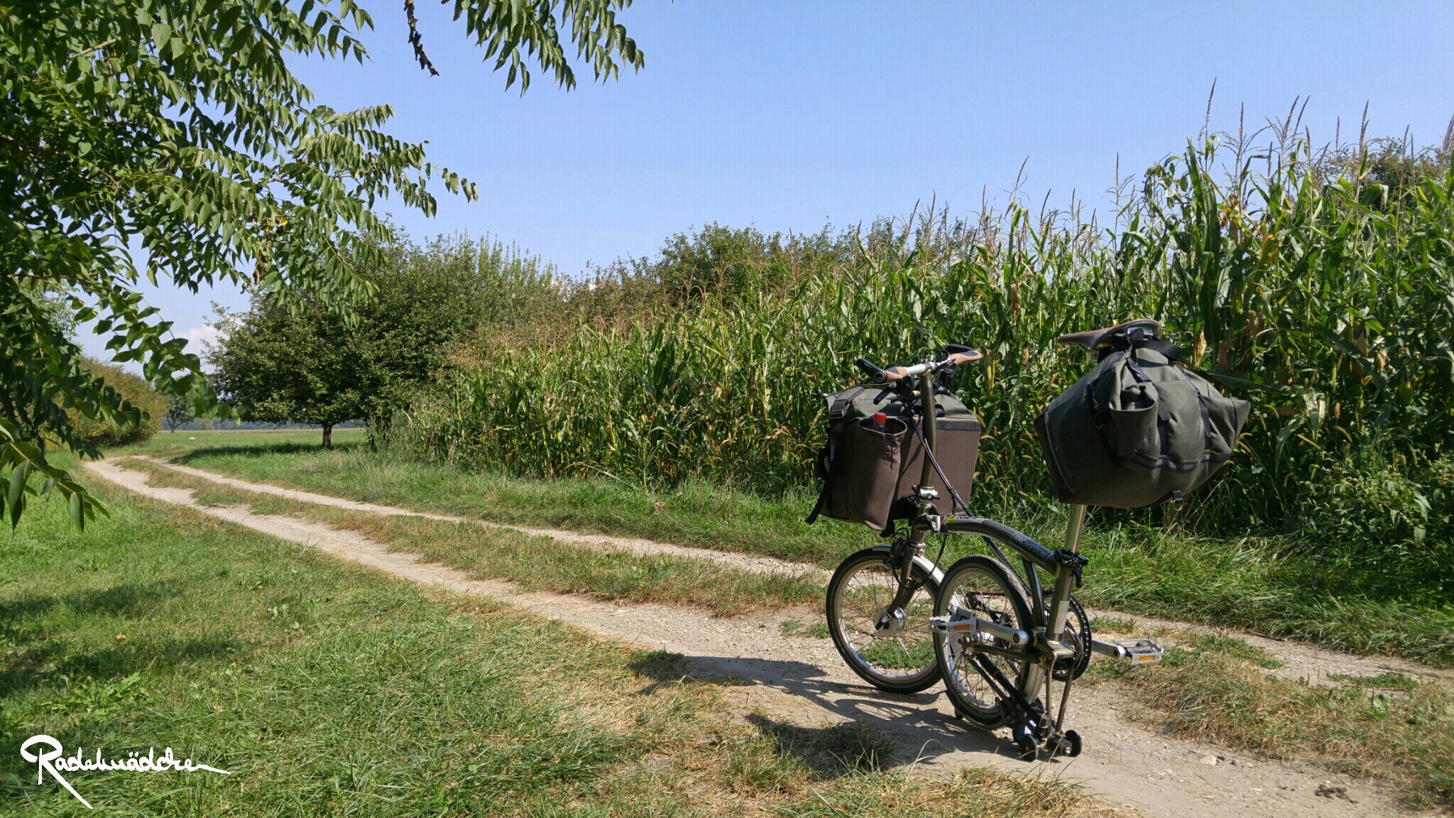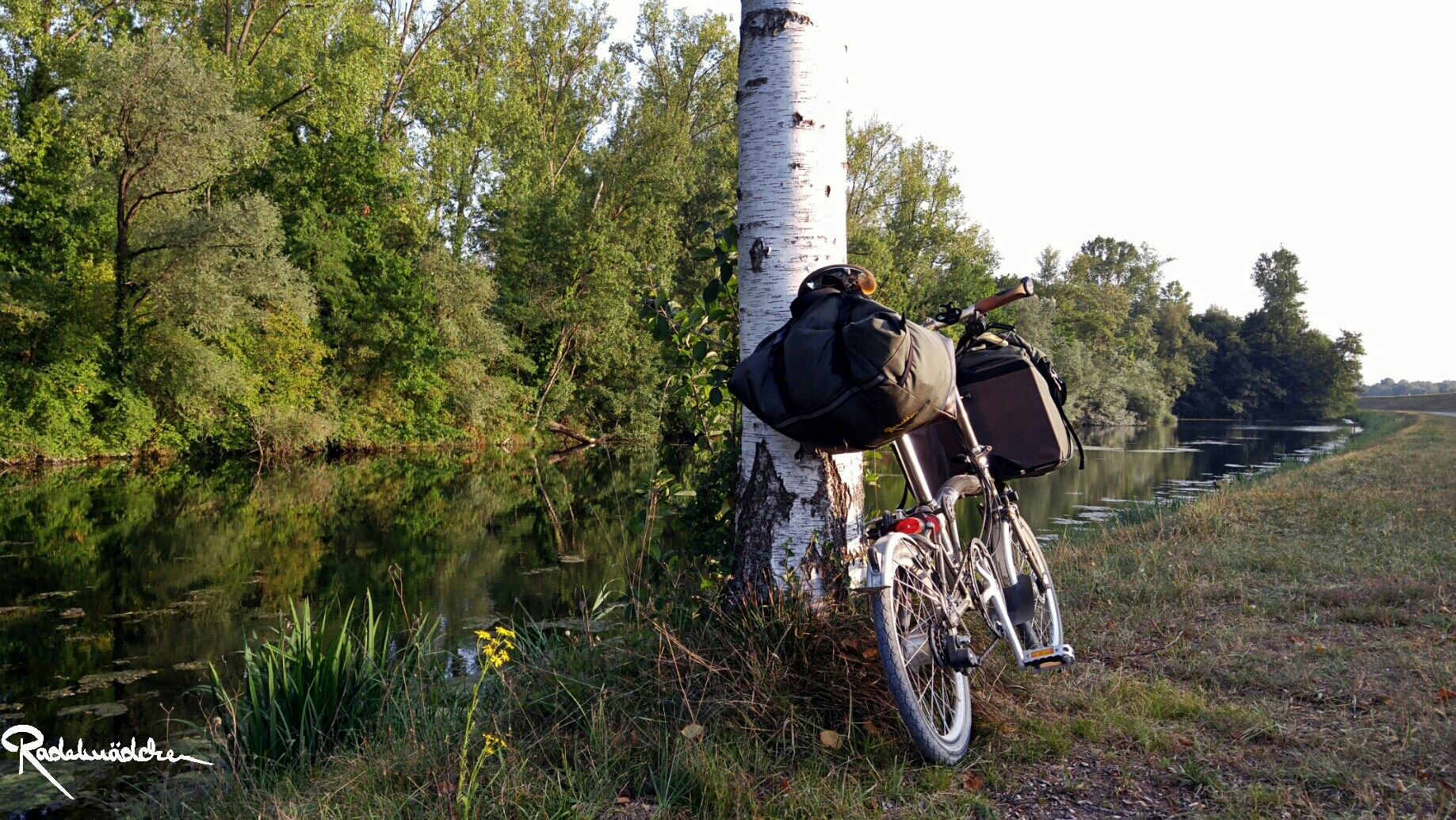 Ich bewundere deinen Mut, dich derart bepackt mit dem Brompton abzustrampeln. Wir fahren mit 28″-Randonneuren, und ich habe ständig das Gefühl, den Rädern zu viel zuzumuten. Die Strecke am Rhein (und deutlich weiter) sind wir schon öfter in beiden Richtungen gefahren, aber fast immer auf französischer Seite, weil da der Weg besser ist. Irgendwie sind wir nicht so scharf auf Stock und Stein und Matsch und …