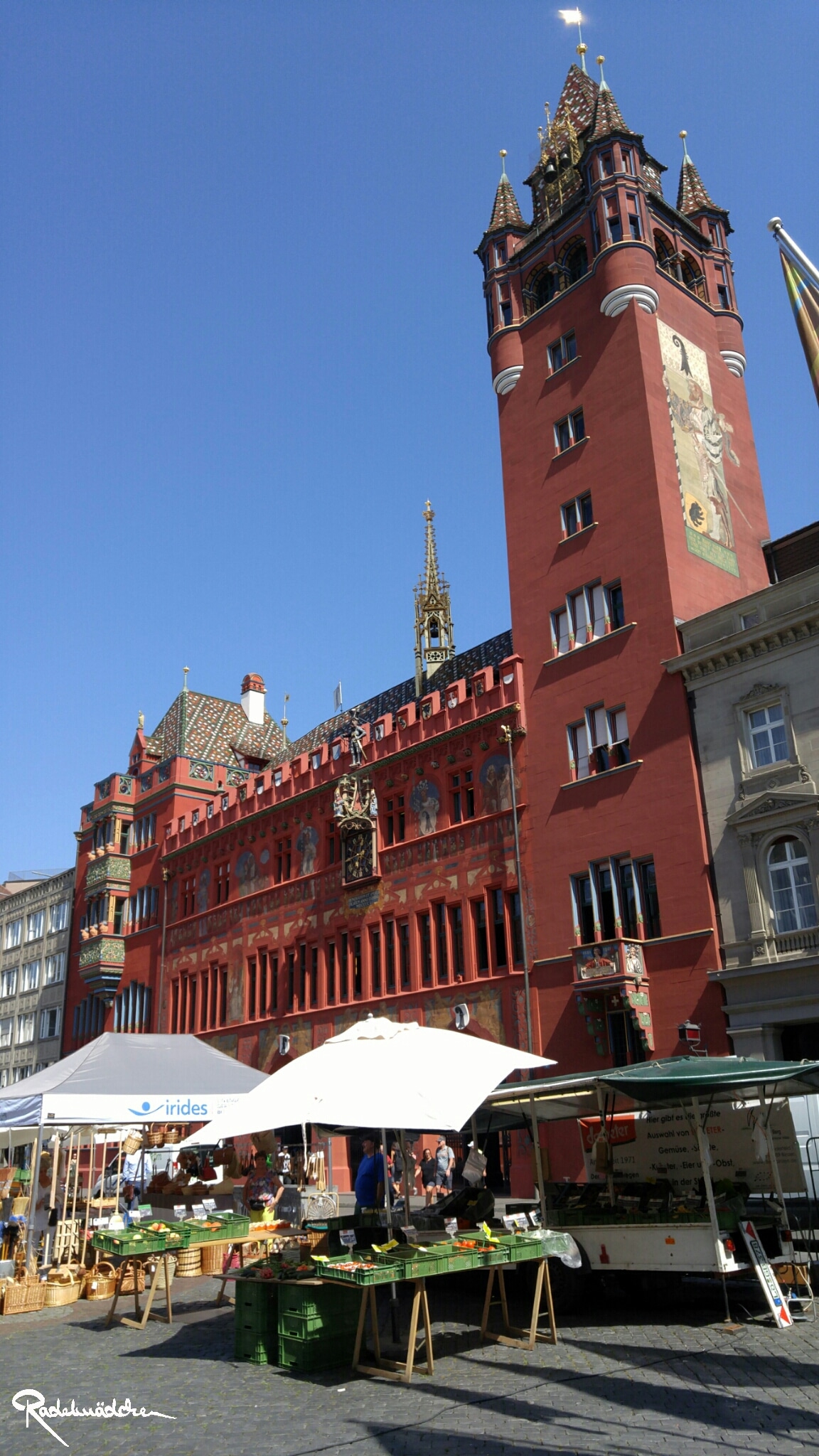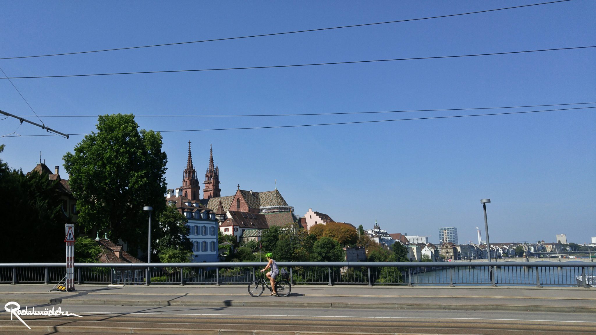 Das Wetter war nach wie vor großartig und so war es nicht verwunderlich, dass an diesem Dienstagmittag viele Menschen die letzten Sommertage in vollen Zügen genoßen – mit Vorliebe nah am Wasser. Der Rhein fließt breit durch die Stadt und teilt sie mehr oder weniger mittig. Den eindrucksvollen Basler Münster sah ich nur aus der Ferne. Auch wenn ich kurz die Rheinseite wechselte, um über den Rathausplatz und durch die Große Altstadt zu fahren, wo sich auch der Dom nah am Wasser befindet.