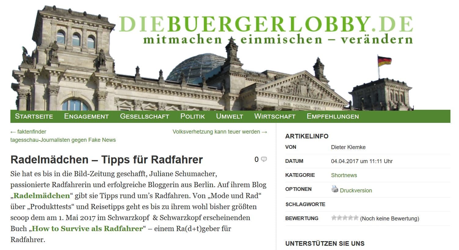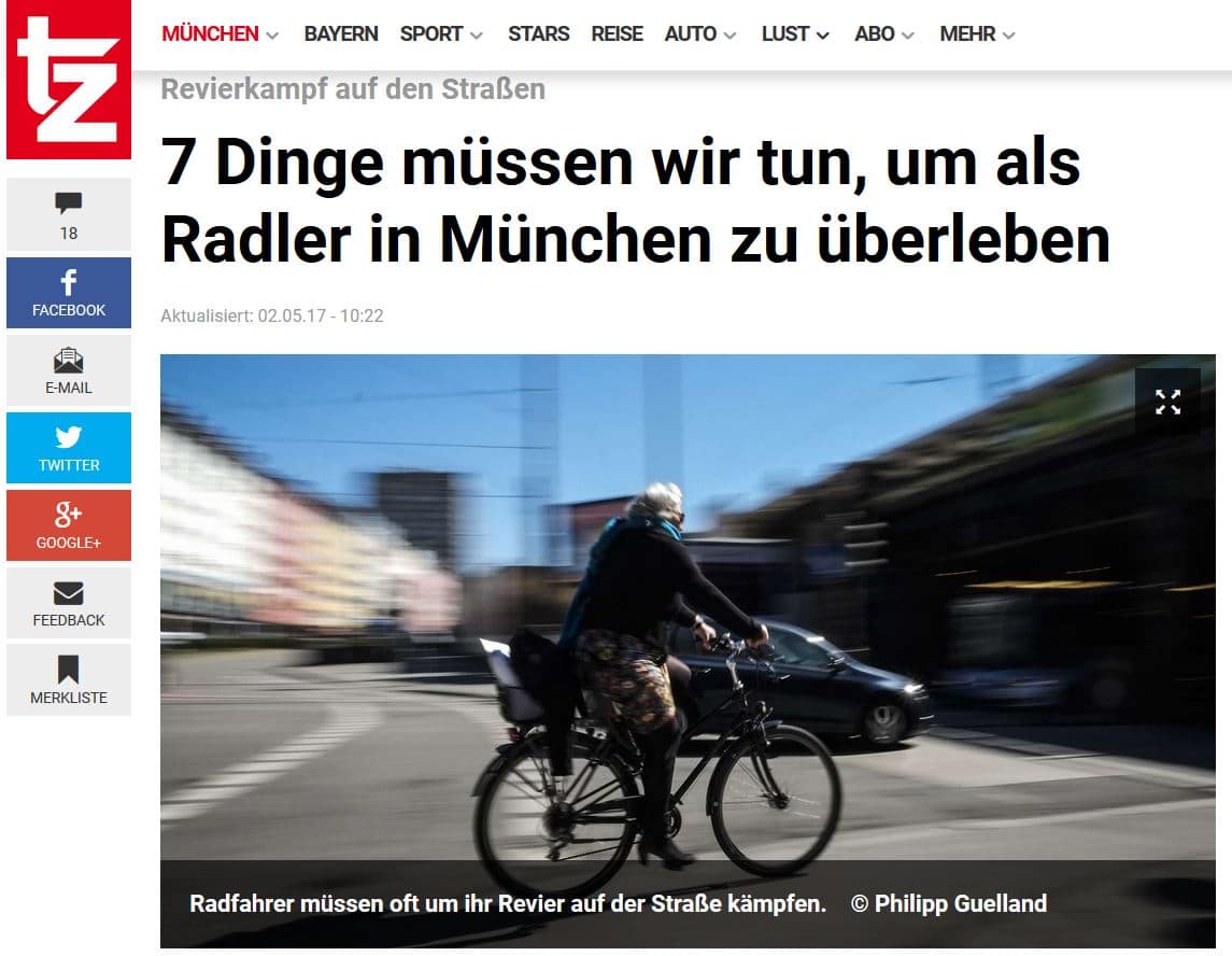 Die tz aus München hat einen eigenständigen Artikel verfasst. Dort werden auf Grundlage meines Buches ein paar Tipps zum Radfahren in München gegeben.