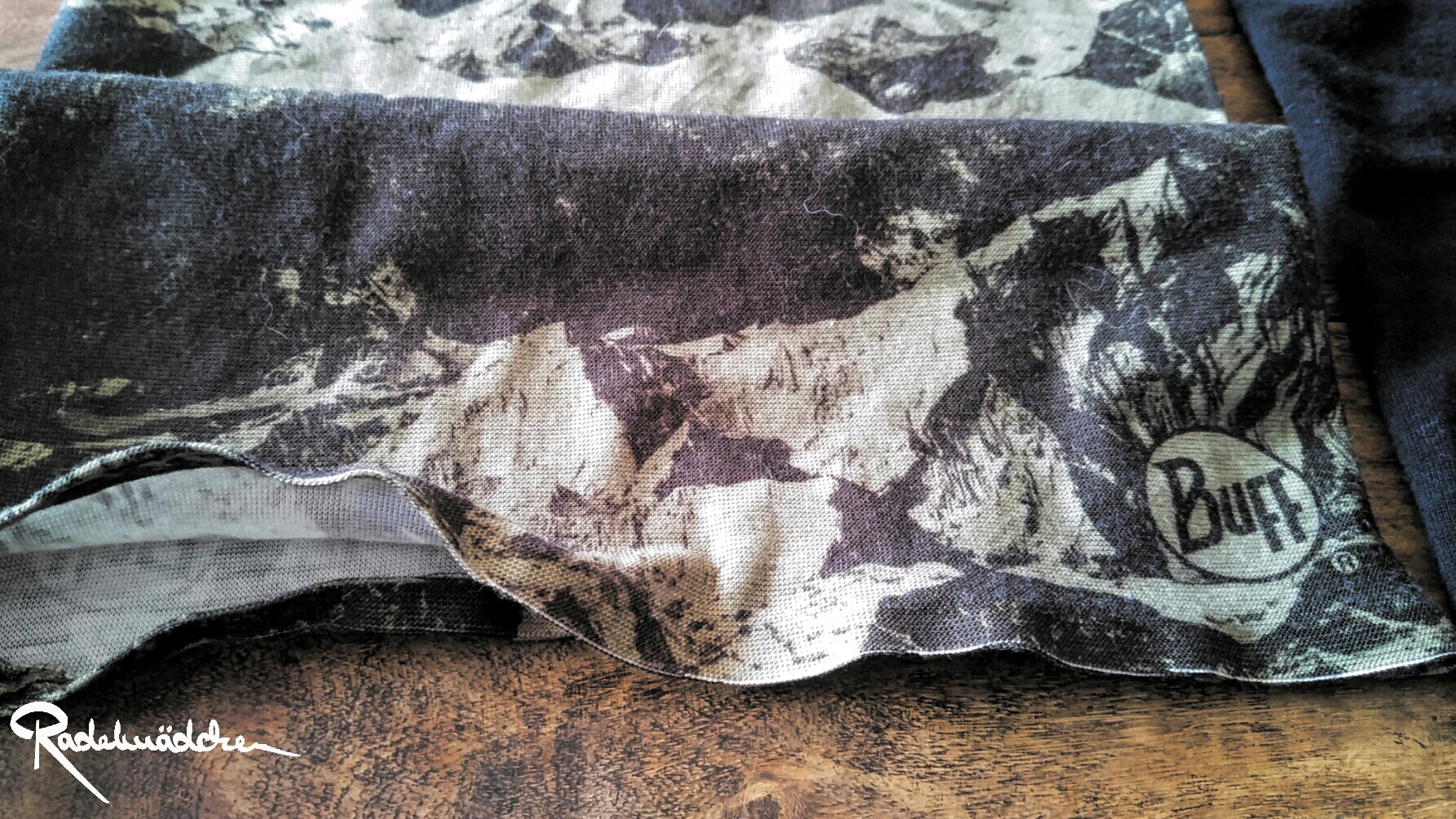 Dunkelgrün und mit einem feinen dunklen Muster bedruckt, gefällt mir die Optik sehr gut. Manchmal hat es mich nur gestört, dass die Innenseite des Tuches hell ist, was durch das Rollverhalten des Materials auch sichtbar werden kann. Auch hier gilt wieder: Buff hat viele verschiedene Modelle und auch Farben und Muster im Sortiment. Das Tragegefühl ist gut, obwohl ich die Kanten teilweise etwas zu fest fand.